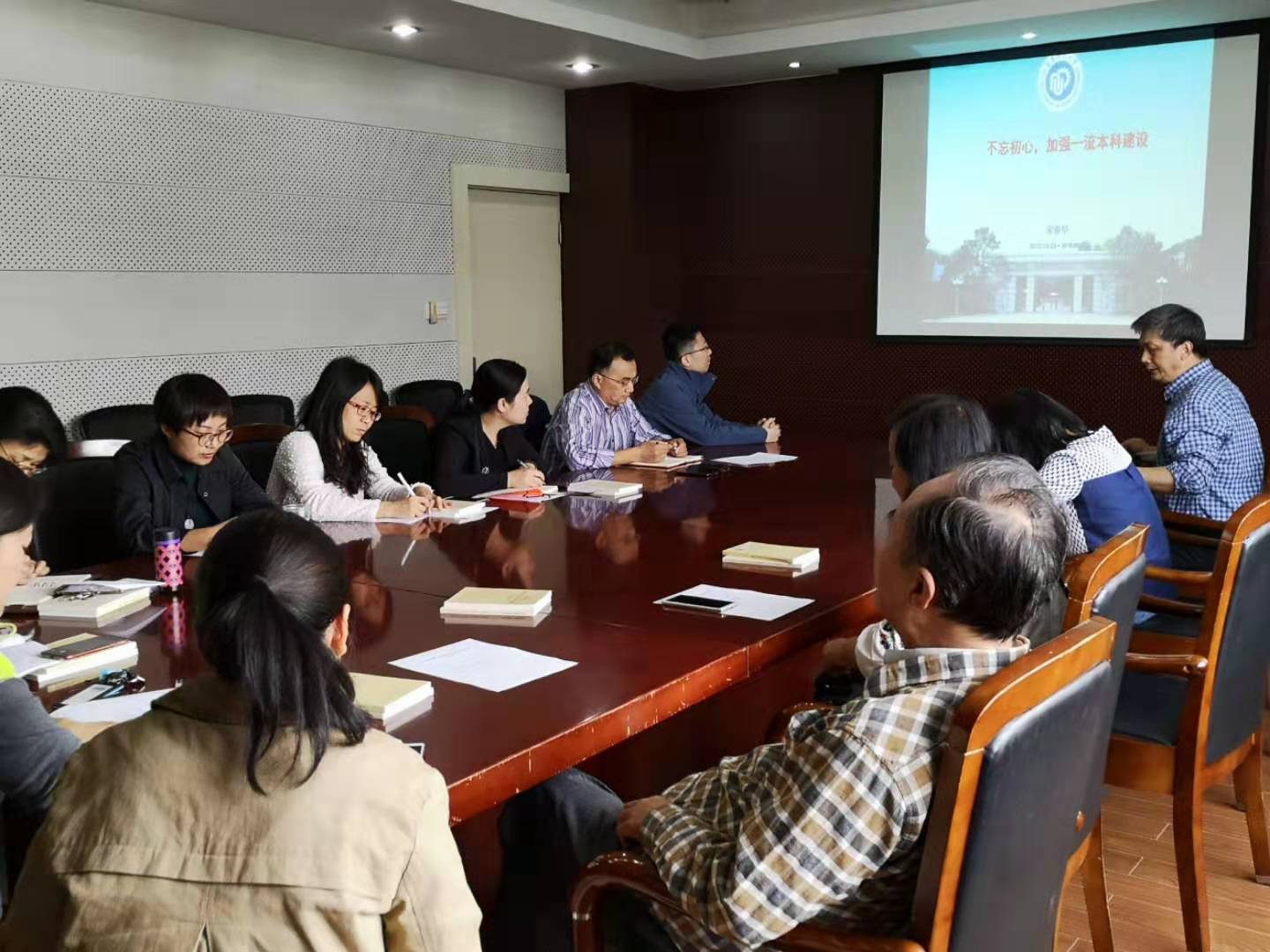 宋恭华最后结合自身和学院发展,指出一流本科建设,关键要抓一流专业,一流课程以及基地建设等,他希望与各位党员一道,牢记立德树人的使命,清醒认识当前本科教育面临的问题和挑战,明确目标和任务,工作中坚持育人为本,不忘初心、牢记使命,勇于担当,做好一流专本科建设各项工作。